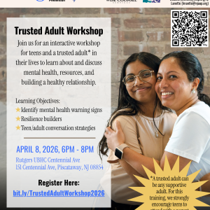 Join Prevent Suicide NJ, the American Foundation for Suicide Prevention New Jersey Chapter, and Wise Counsel Services for an interactive workshop for teens and a trusted adult in their lives to learn about and discuss mental health, resources, and building a healthy relationship. Learning Objectives: Identify mental health warning signs Resilience builders Teen/adult conversation strategies